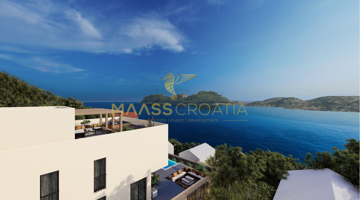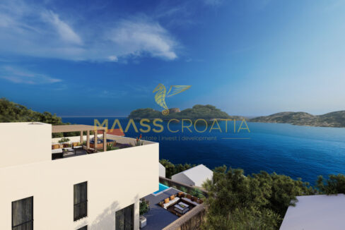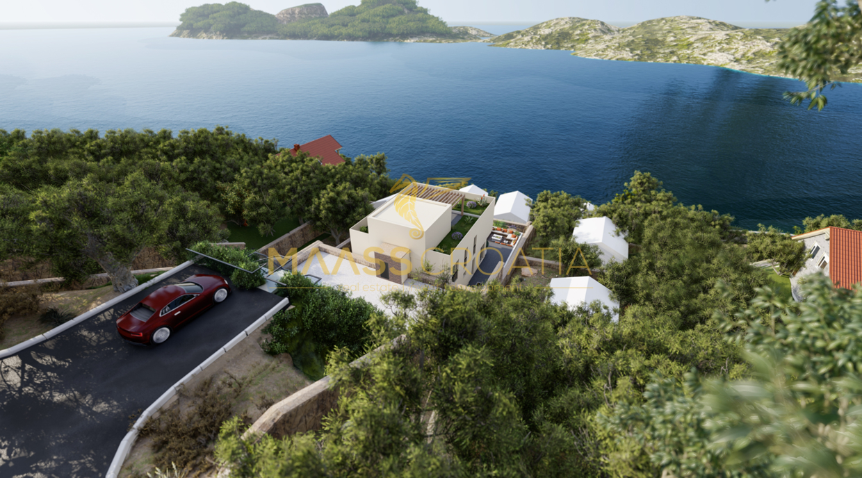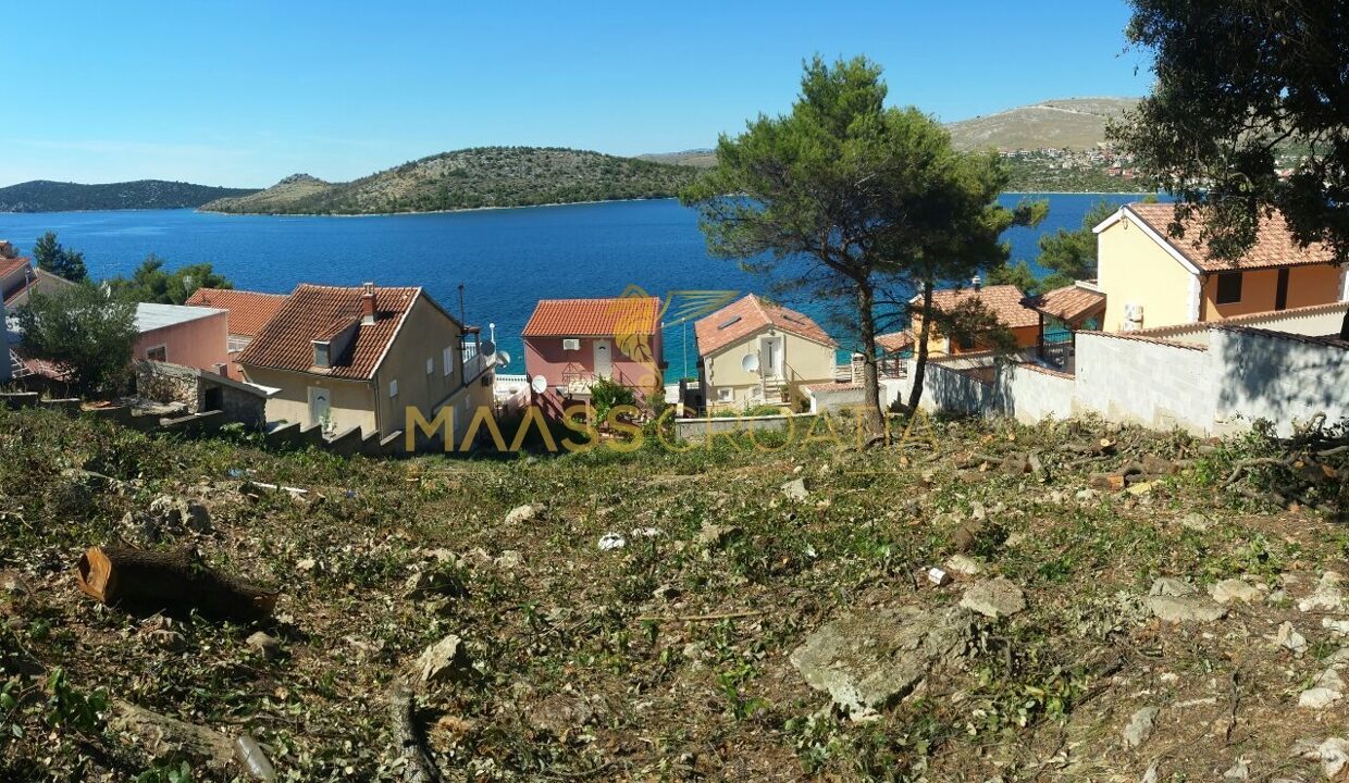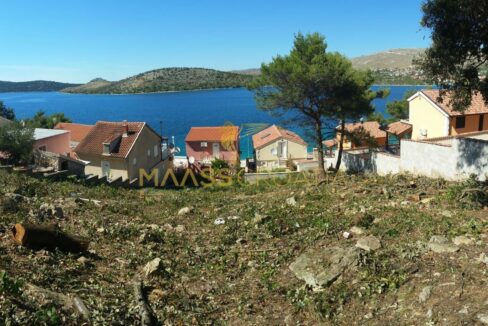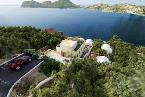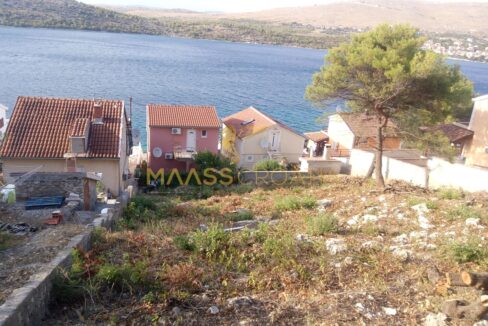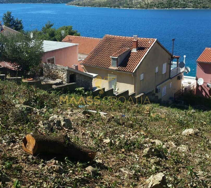 A téglalap alakú telek megközelítése a főúton keresztül történik, a terep lejtős, és akadálytalan kilátást nyújt a tengerre.