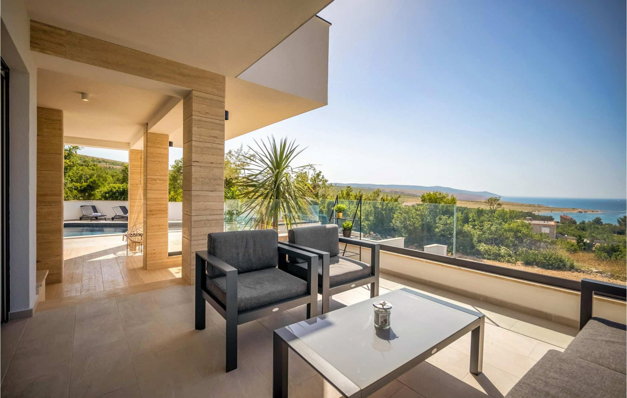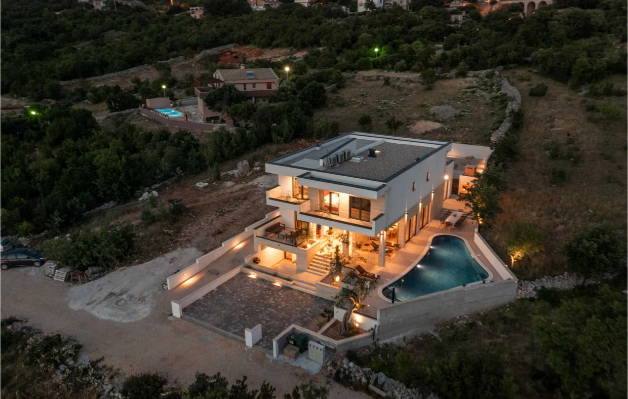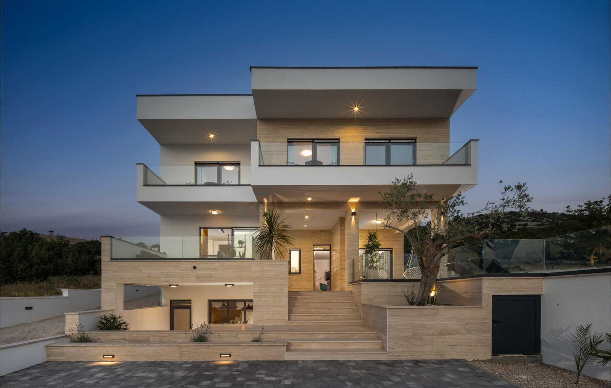 A gyönyörű New Sea View Villa Zadar közelében egy luxus szálláshely, amely mindössze 0,5 km-re található a csillogó Adriai-tengertől.