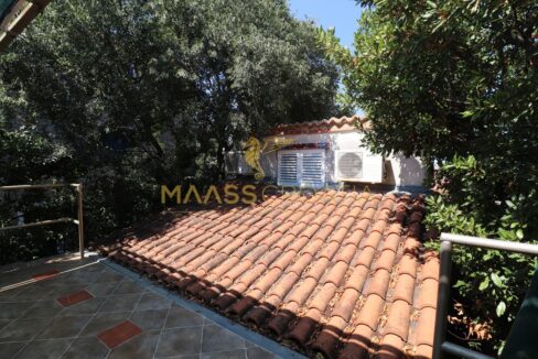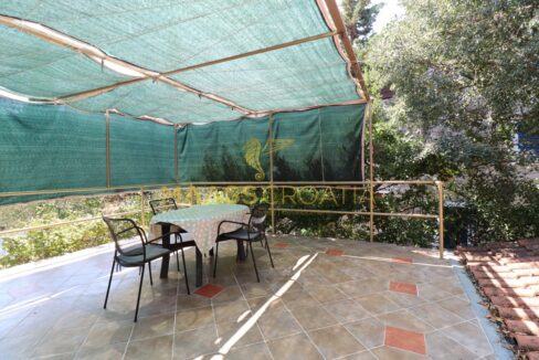 A ház előtt van egy teraszos terület kerttel, külső lépcső vezet a tetőteraszra és egy szabadtéri zuhanyzóra, a lépcső alatti tér pedig tárolóhelyiségként szolgál.
