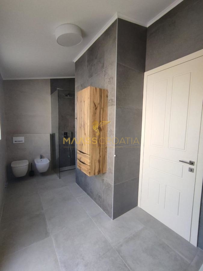 Az első emeleten, amelyhez egy belső lépcsőn keresztül lehet feljutni, négy hálószoba található külön fürdőszobával és egy nagy fedett terasz grillezővel és tengerre néző kilátással, amely minden szobából elérhető.