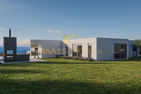 A földszinten a bejáraton keresztül két folyosóra jutunk, amelyek a konyhával és étkezővel rendelkező nappaliba vezetnek, nagy üvegfalakkal. Innen egy 30,60 m2-es kényelmes teraszra jutunk, ahol az úszómedence található, tetszetős dizájnba ágyazva. Természetesen kilátás nyílik a tengerre.