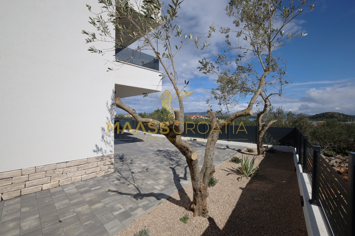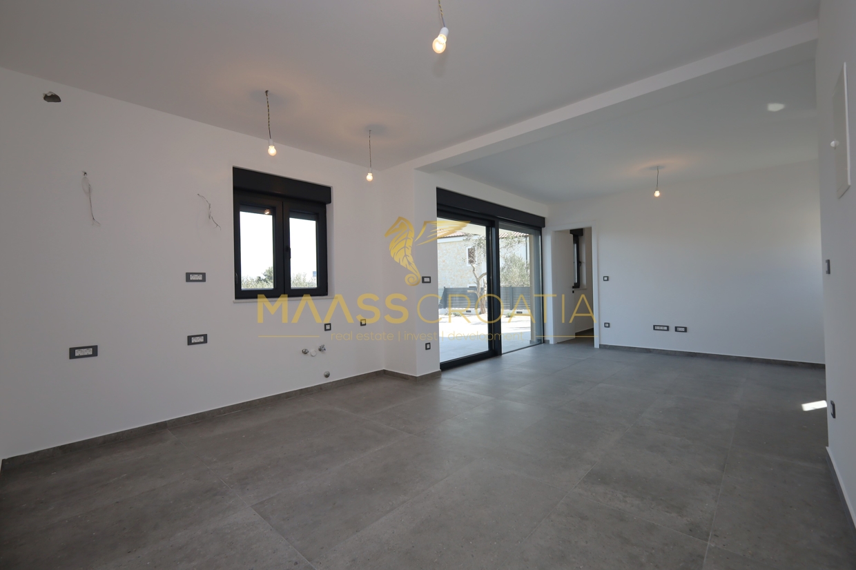 Ez az újonnan épült ház Murter szigetén, csodálatos kilátással a tengerre, három szintből áll.