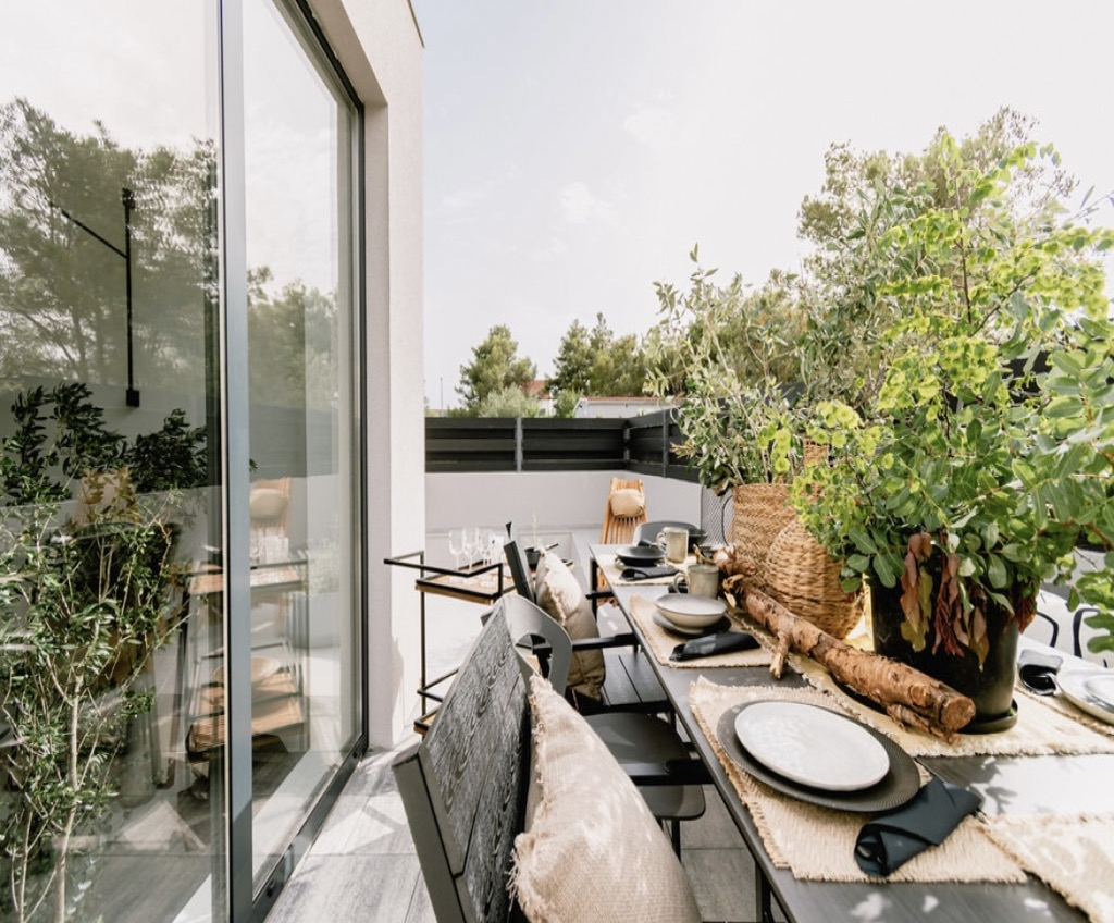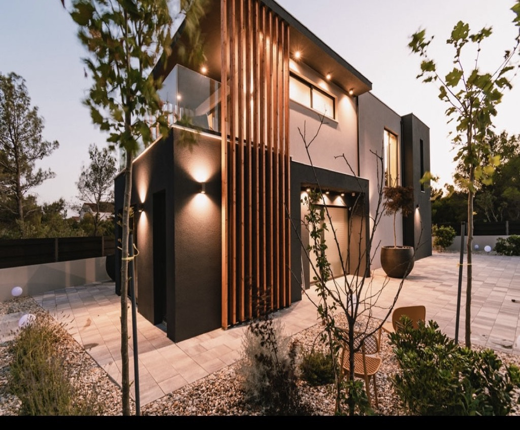 Modern Bauhaus stílusú, nemes és minimalista: ház 3 emeleten tengerre néző kilátással és medencével