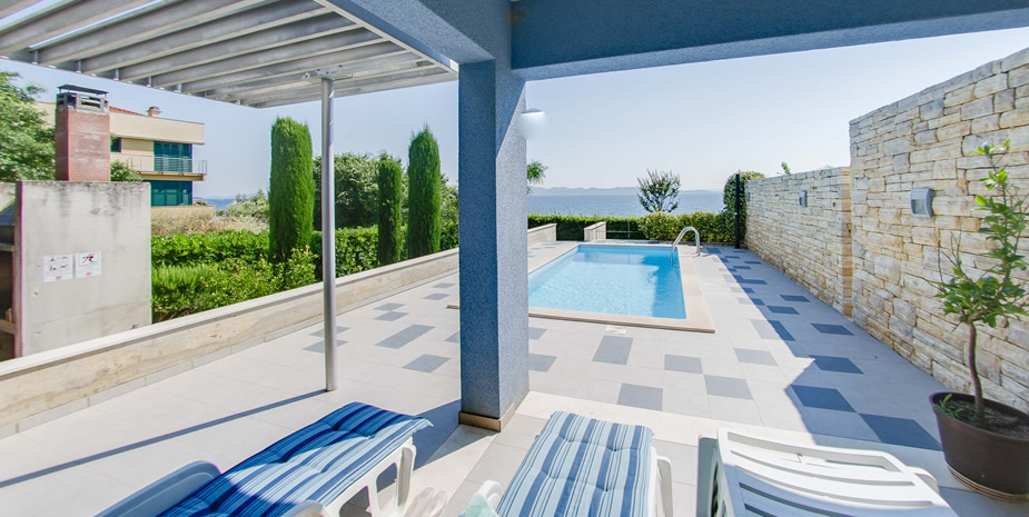 Ez a fantasztikus villa fantasztikus tengerparti kilátással, kék-fehér kombinációban azonnal megragadja a figyelmét.